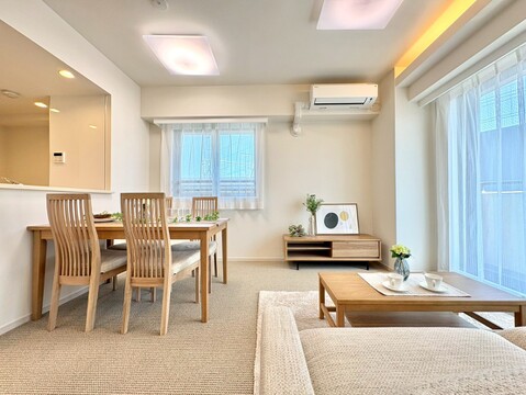 - エアコン、照明、インターホンTV、室内洗濯機置場、フローリング、収納、オートロック、エレベータ、システムキッチン、宅配ボックス、対面キッチン、追焚給湯、浴室換気乾燥機、クローゼット、タイル張り、駐車場、角部屋、リノベーション、リフォーム済み、自転車置き場、食器洗浄乾燥機、洗濯機置場、オートバス、日当り良好、コンロ3口、洗面台独立、5年以内に水回り設備交換、5年以内に内装リフォーム、家具付、脱衣所あり、シューズボックス、モニタ付オートロック、人感センサー付照明、2面採光、全居室フローリング、東南向き、全居室収納、内装リフォーム、ワイドバルコニー