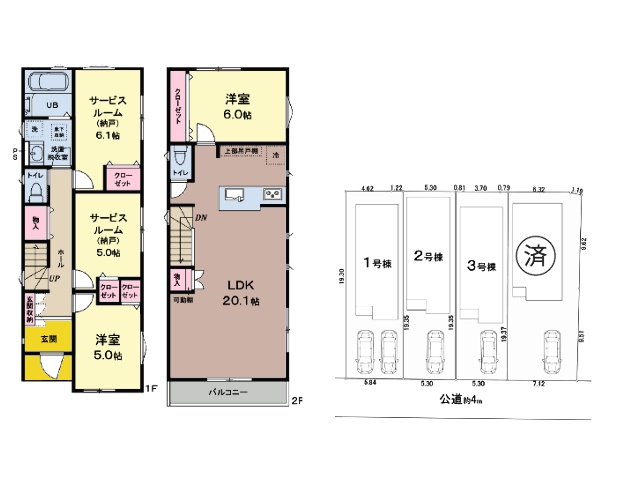 - 南西側4m公道に5.8m接道