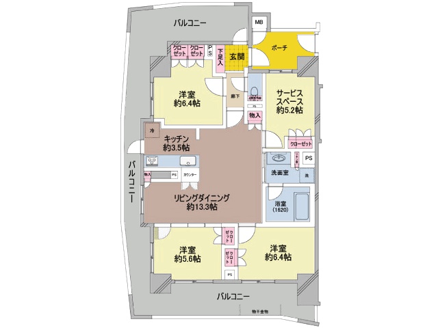 - オートロック、エレベータ、システムキッチン、シャンプードレッサー、宅配ボックス、対面キッチン、ペット、角部屋、防犯カメラ、オートバス、食器乾燥機、モニタ付オートロック、全居室フローリング、全居室収納、ワイドバルコニー、ペット相談